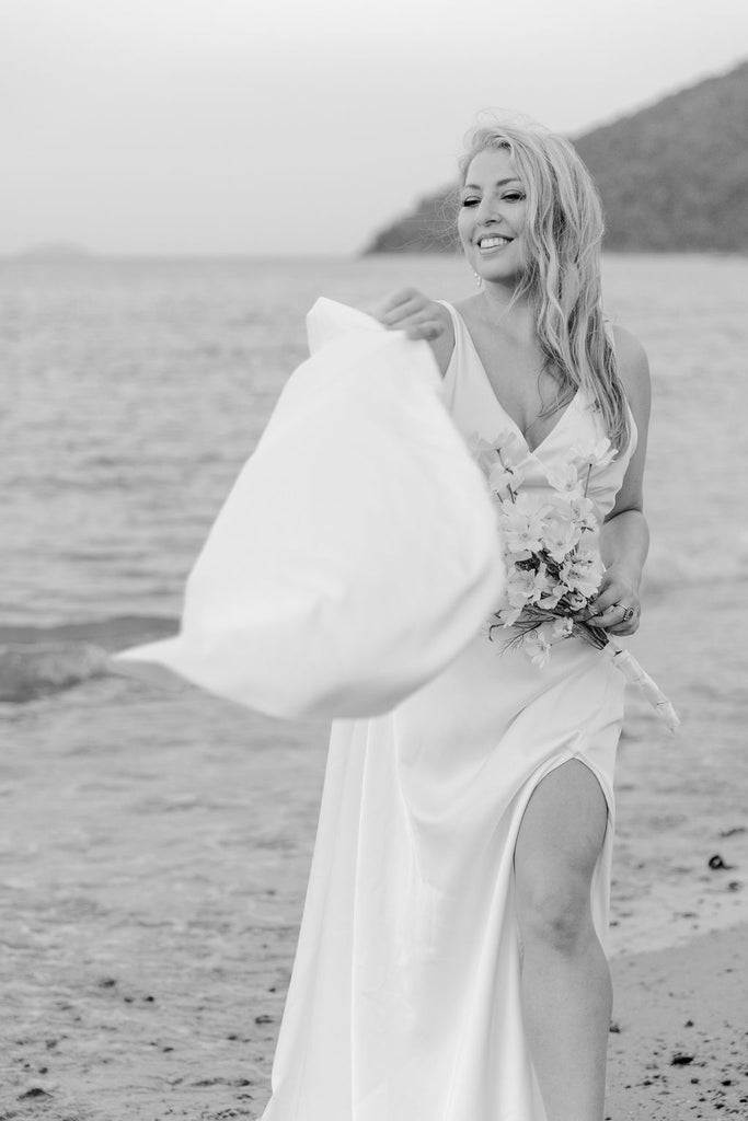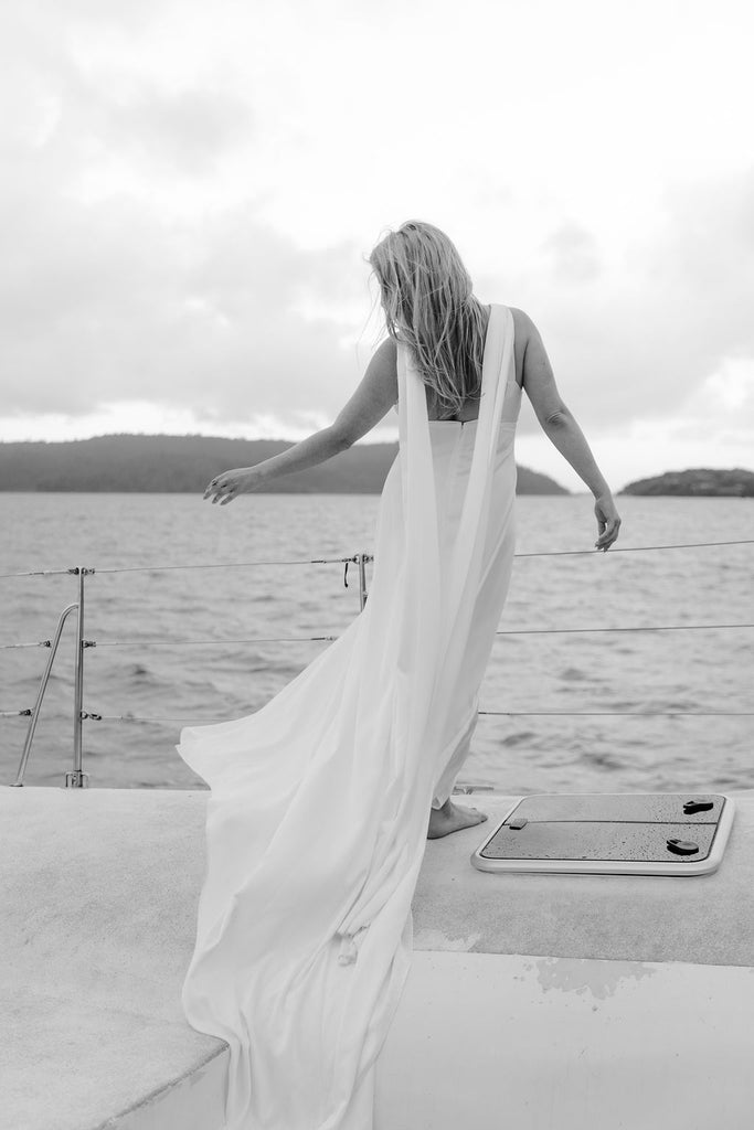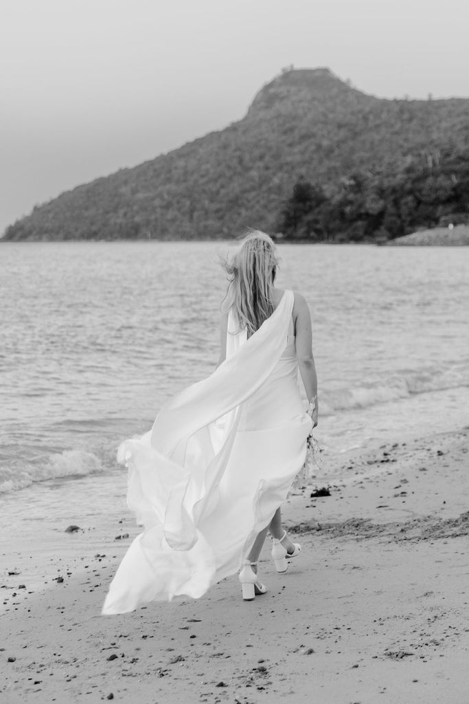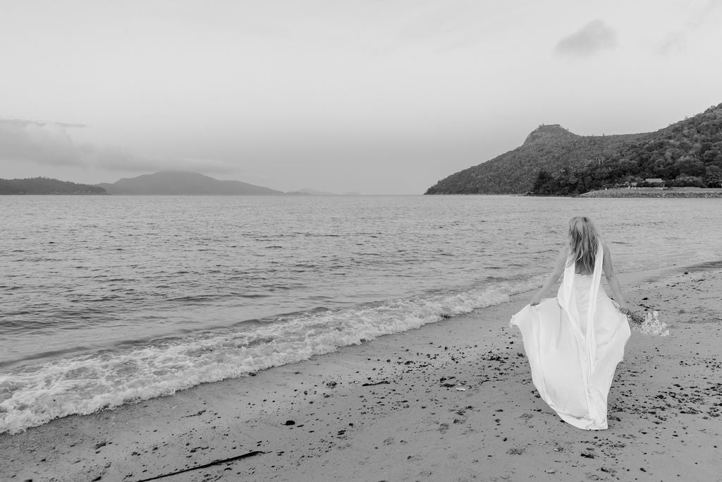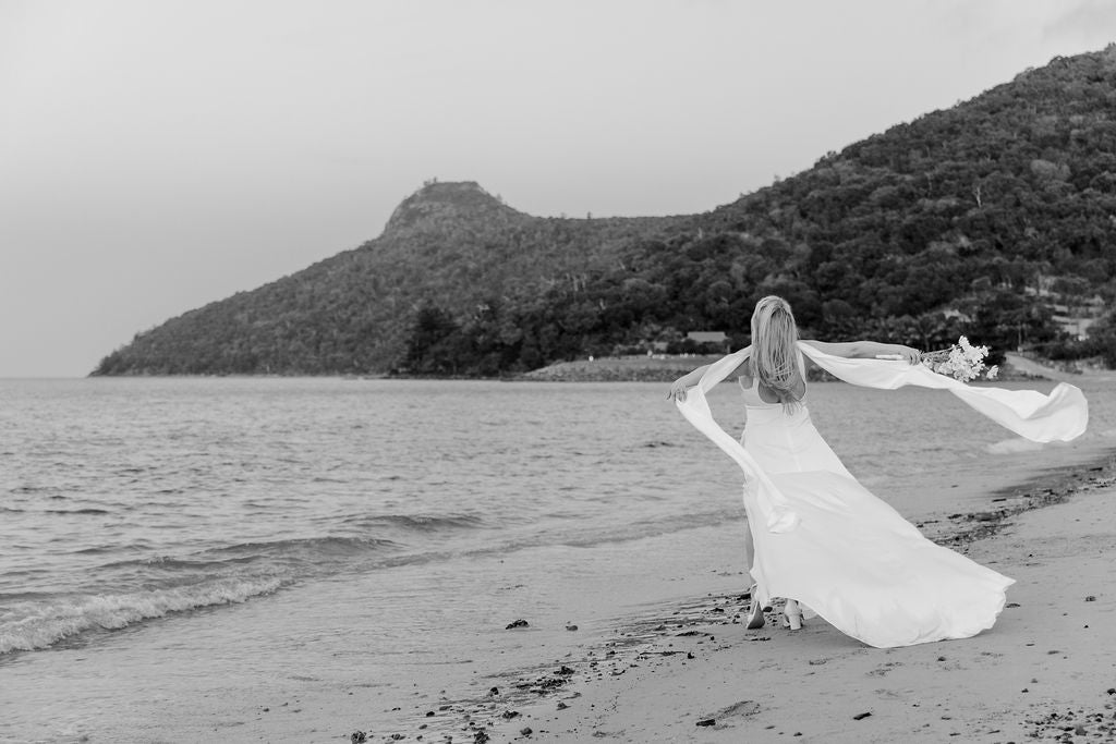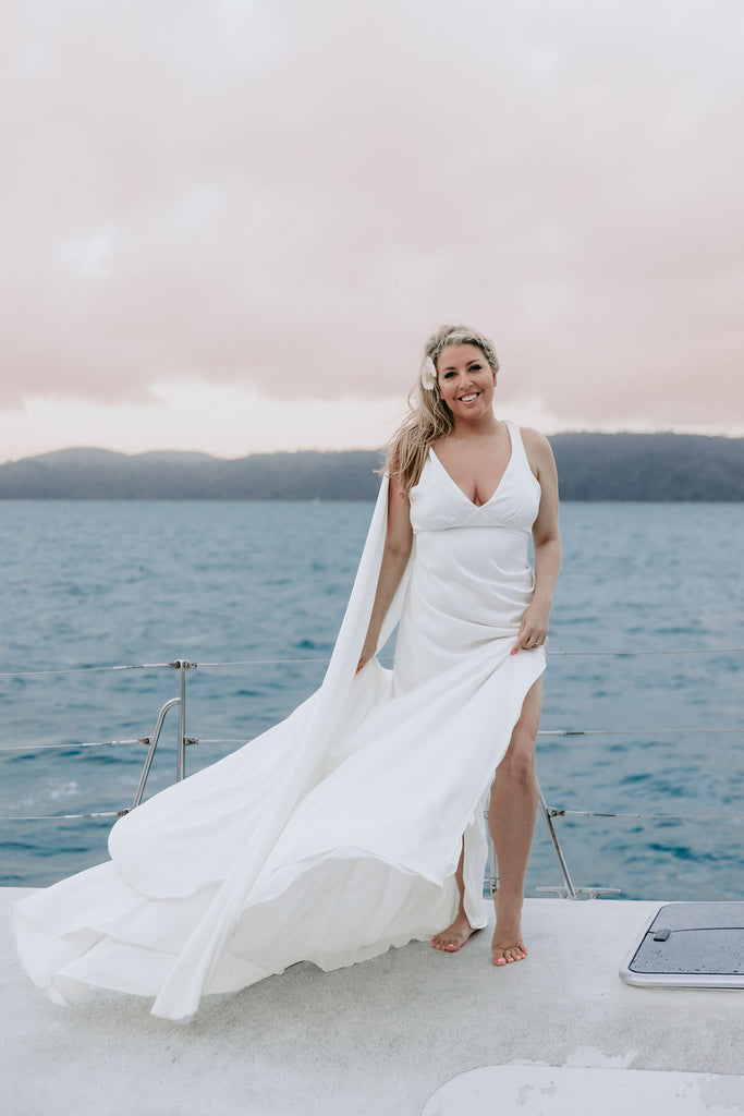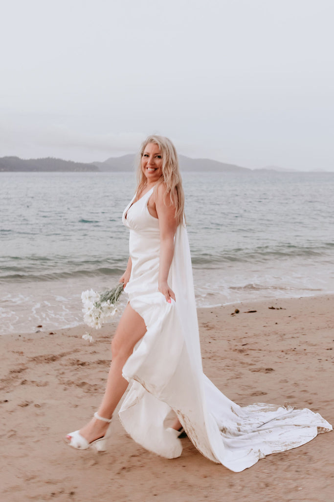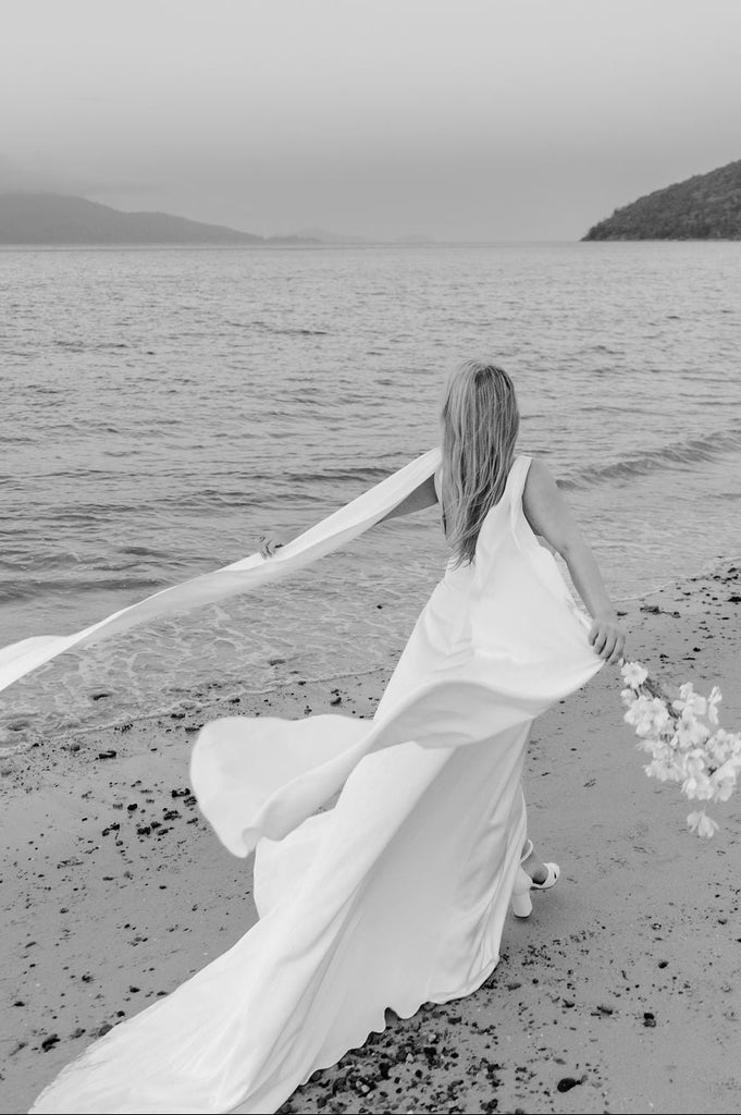 MIAMI is designed to celebrate the wild feminine beauty in every bride. Featuring cape veil sleeves to float in the wind when your walk, dance and run in Mother Nature!